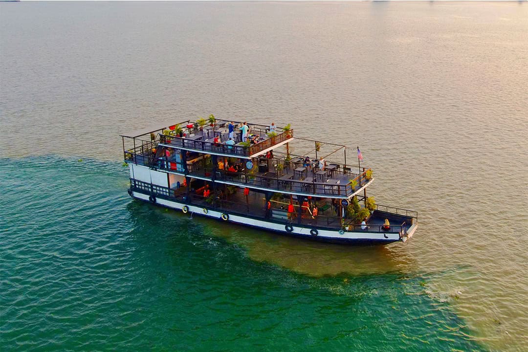 Board the boat and head out onto the Mekong and Tonle Sap, where Phnom Penh’s daily life unfolds along the banks. Fishermen cast nets, children play by the water, boats carry goods and commuters, and riverside communities go about their routines. As the sun sets, the Royal Palace and city skyline catch the light, while you sip free-flow beer and soft drinks and watch the city’s pulse from the water. A different perspective on Phnom Penh, where the river defines the rhythm of urban life.