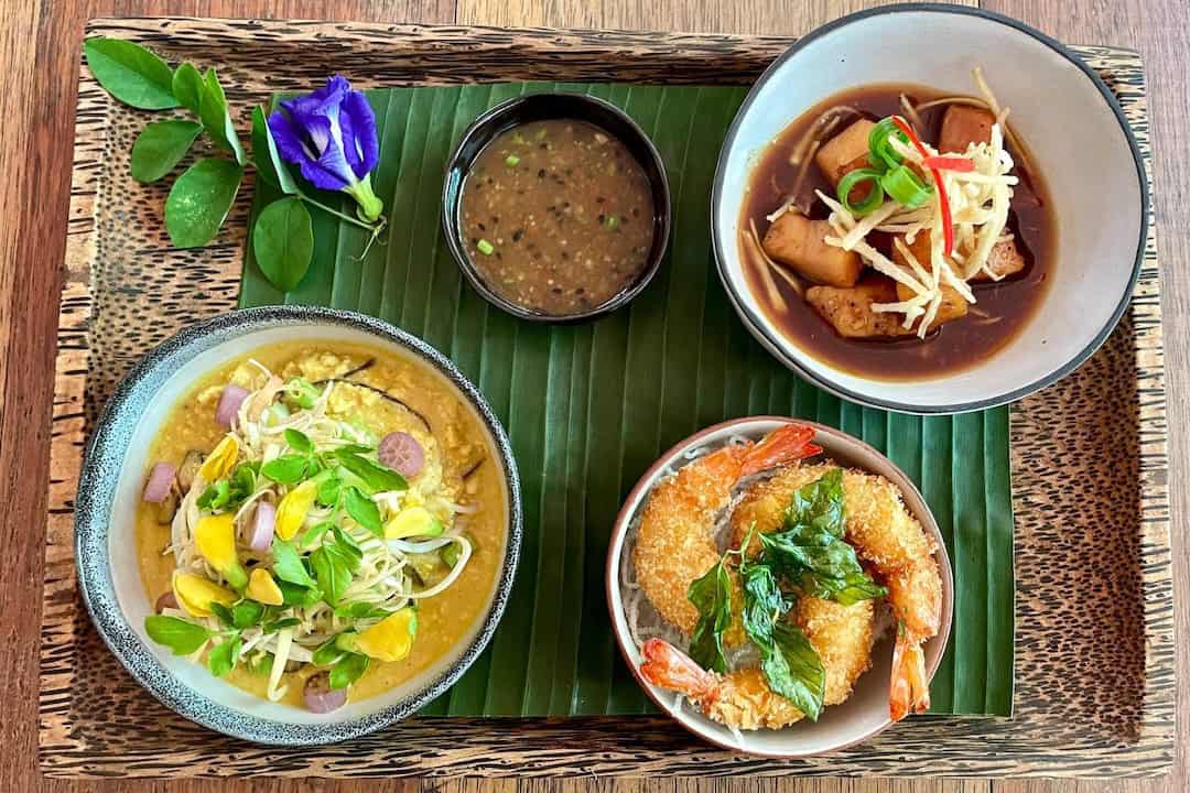 Start your culinary adventure with a drink of your choice (they have excellent cocktails and fresh juices!) and starter dishes at our first stop, where you can also explore the kitchen garden where much of the produce is grown. Here, you’ll experience three flavors synonymous with Cambodian cuisine.